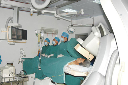 我科是省首批获得心血管介入诊疗资质的科室之一,是淮海经济区规模最大、技术最全面、诊疗量最大的中西医结合心脏介入诊疗中心之一。目前我中心已取得冠心病介入治疗、心律失常介入(电生理与导管消融治疗)、心律失常介入(器械治疗)、结构性心脏病介入治疗等全部四项心血管介入诊疗技术资质。 本中心拥有最先进的心血管诊疗设备,如西门子Artis Q ceiling C臂DSA成像系统、CARTO 3电生理标测系统、SonoSite床边彩超、飞利浦IE33心超、PM-9000 Express多参数监护仪、血管内超声、主动脉球囊反搏(IBP)、冠脉旋磨仪等多种先进医疗设备。其中心导管室与病房、CCU相连一体,最大限度地缩短了门球时间,方便了患者的救治。 我科已成立了心电远程中心,协助部分县区级医院完成疑难心电诊疗工作。