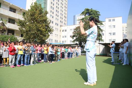 护理部主任陈学玲、2024欧洲杯下注平台_2024欧洲杯买球APP-官网护士长王轶、护士徐莎和杨蕾带领师生进行了识中药、中医健康小手操互动。