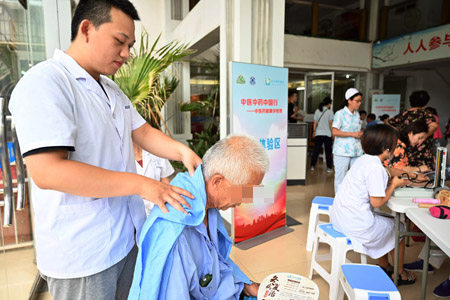 在互动体验区,设置了常用人体穴位辨识、保健;推拿体验;艾灸指导等项目,市民纷纷踊跃参与体验,并连连夸赞中医的神奇效果,医务人员热情接待每一位体验市民,本次共有30余位市民参与中医外治法的体验。