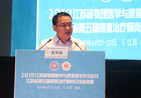 范从海院长在致辞中对各位专家和各界代表的到来表示衷心感谢和热烈欢迎,并介绍了医院近年来的发展情况、新院建设情况以及在重点学科建设、亚学科管理、普病与专病建设、中医特色技术等方面的内容。近年来,徐州市中医院康复医学科取得了较快的发展业绩,是江苏省残联认定的江苏省0-6随残疾儿童抢救性工程的定点机构,徐州市临床重点专科,已发展成了集现代化康复技术与传统康复技术相结合的康复治疗衷心。他表示,本次会议专家学者云集,有康复界的元老,也有康复界的新锐,更邀请到了香港和台湾的专家,相信他们的精彩授课,会让大家受益匪浅。希望通过此次大会,为广大康复同仁提供一个相互学习、相互交流的平台,以此提升徐州地区的康复治疗水平。