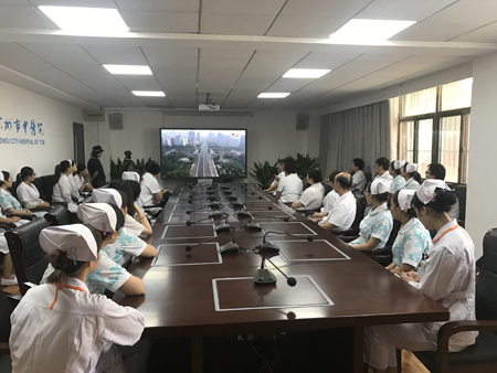 10月1日上午10时,市中医院在多功能会议室组织职工集中收看庆祝中华人民共和国成立七十周年大会、阅兵和群众游行实况直播。