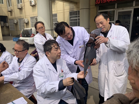 义诊过程中,徐州市中医院专家们耐心询问患者身体状况、日常饮食以及用药情况,为其仔细检查并提出下一步诊疗方向,对老年人常见病、多发病的预防诊治及愈后等疑难问题,也给予耐心解答。