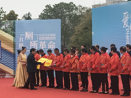 范院长为徐州市首届最美“公厕卫士”获奖者颁发免费健康体检卡。