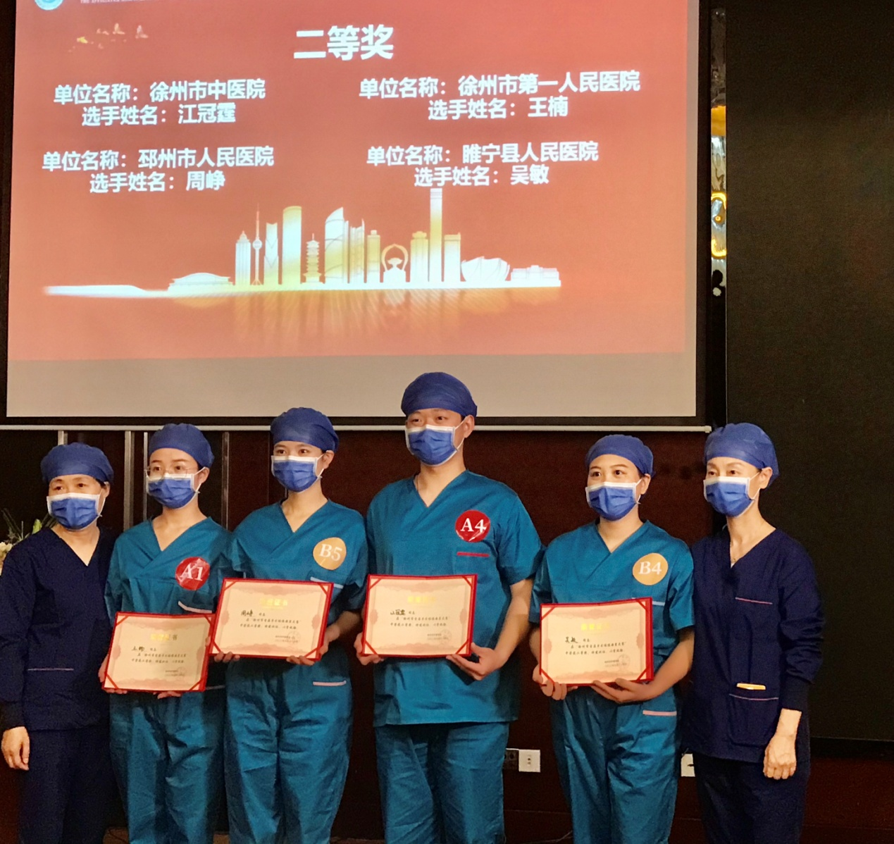本次比赛以《手术室护理实践指南》为评分标准,采用真人模拟,再现手术情景,并按照病例要求安置体位。徐州市中医院选派的江冠霆、王珍两位选手,在大外科护士长李美娟和手术室护士长魏萍的指导下,经过1个月的刻苦训练,从各种手术理论到实践反复练习,精雕细琢。比赛中,两位选手动作娴熟、沉着冷静、操作规范,充分暴露手术视野的同时保障患者术中安全舒适,展现了市中医院手术室护士扎实的基本功和一丝不苟的工作作风,最终以优异成绩获得此次大赛的二等奖。