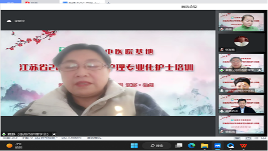 12月19日,江苏省中医护理专业化护士徐州市中医院基地第二届培训班开幕式,在徐州市中医院六楼会议室召开。共有来自全省各地的36名中医护理骨干参加了网上开班仪式,她们将在我院完成2周理论和4周临床实践培训,并参加结业考核。