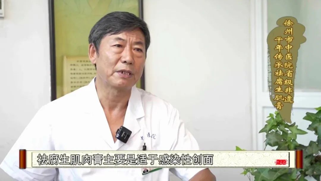 杨六中主任介绍,祛腐生肌膏适用于感染性创面、化脓性创面,主要功效是祛腐,腐就是指感染。把腐肉去掉以后,促进炎症消退,加速肉芽组织生成,加速上皮细胞生成,使皮肤逐渐在炎症消退过程中,表皮逐渐生成。