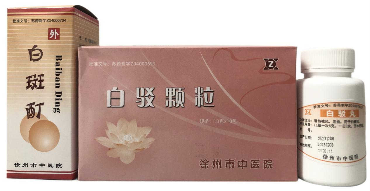 徐州市中医院皮肤科根据白癜风的病因病机,研制了具有活血祛风、调和气血、滋肝补肾作用的医院自制制剂白驳丸和白驳颗粒,以及外用药物白斑酊,治疗白癜风效果非常好。另外,针对肢端部位(手足部位)的白癜风,我院皮肤科研制了中药泡洗协定方,将中药水煎后对手足部位进行浸泡治疗。