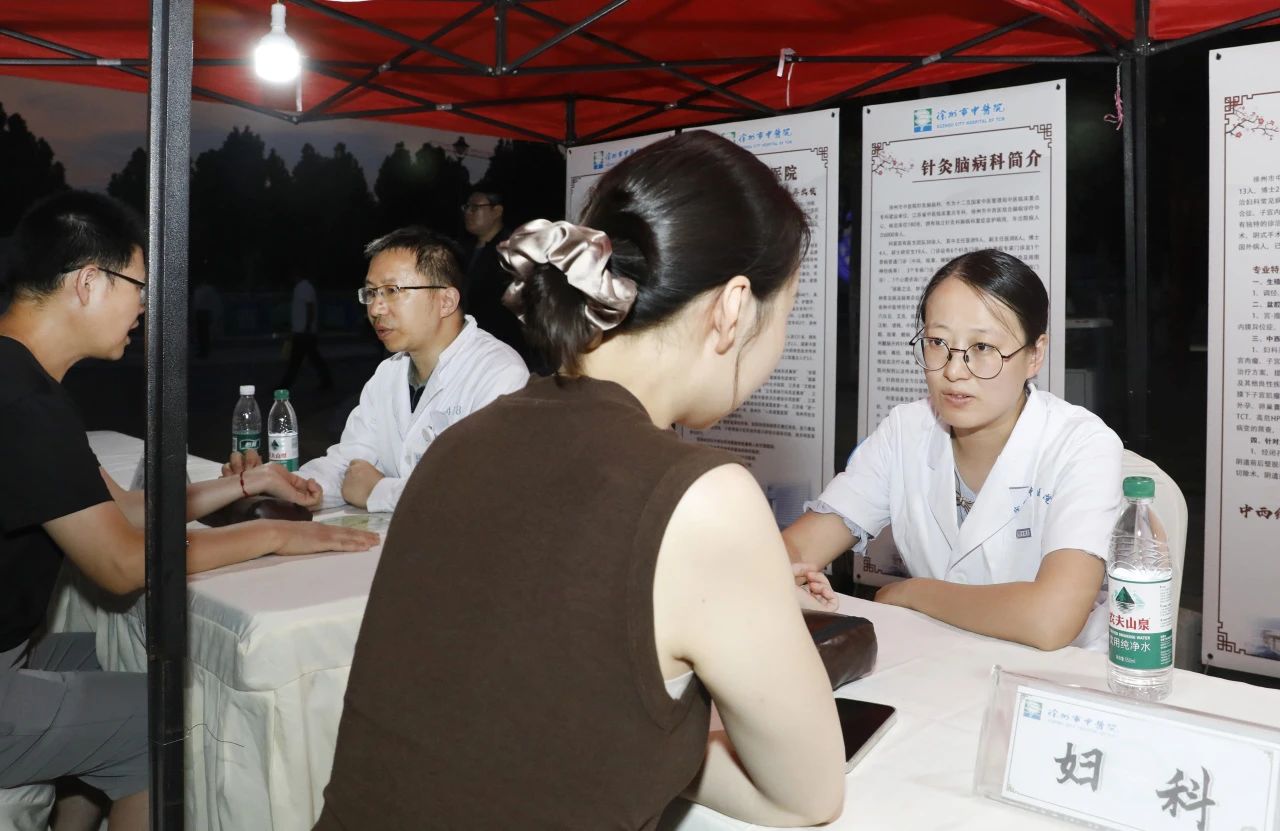 夏夜的大龙湖畔华灯初上,“岐黄医道?湖畔百草集”活动火热开启。徐州市中医院的义诊展位前人潮涌动,十余名中医专家走出诊室,将“健康服务站”搬到了市民家门口。免费把脉问诊、体质辨识、养生指导,还有艾草香囊、养生茶饮等赠品相送,让逛夜市成为“健康充电”的全新方式。