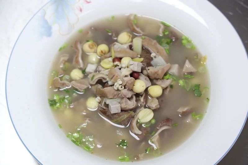 茯苓性平味甘,能健脾渗湿;芡实性平味甘涩,可固肾涩精、补脾止泻;薏仁性凉味甘淡,能健脾祛湿;莲子性平味甘涩,可补脾益肾、养心安神。四者配伍,恰合“脾主长夏”之理,再搭配性温的猪肚,既能借助猪肚的补益之性滋养脾胃,又能通过四神的协同作用祛湿固涩,实现“长夏调脾不滞湿,补虚不滋腻”的效果。