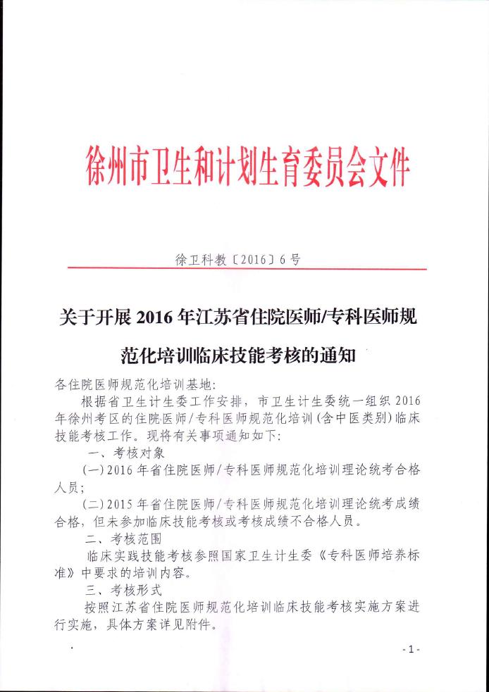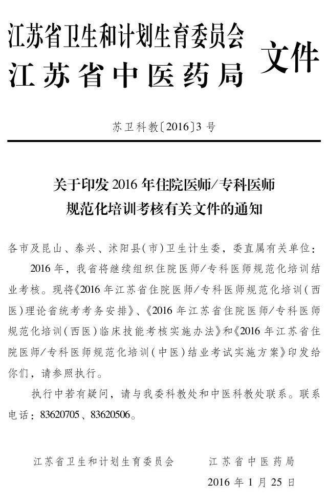 查看详情附件下载:附件1 江苏省住院医师规范化培训(西医+中医全科)临床技能考核实施方案附件2江苏省中医住院医师规范化培训临床实践技能考核操作流程表附件3 2016年江...