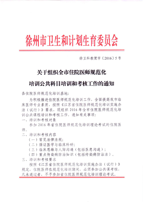 查看详情附件下载:附件1徐州市2016年住院医师公共科目培训课程安排附件2徐州市2016住院医师规范化培训公共科目教室安排...