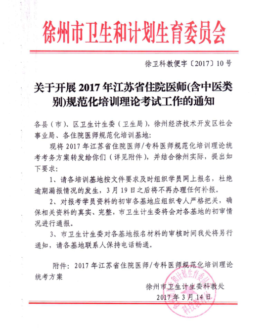 查看详情附件下载:2017年江苏省住院医师、专科医师规范化培训理论统考方案...