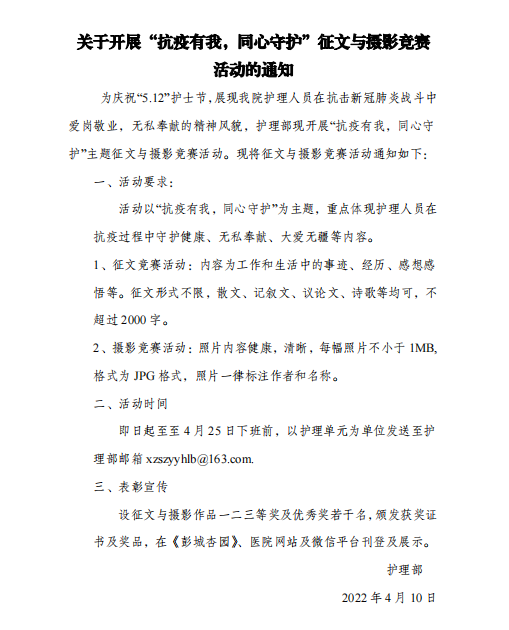 查看详情为贯彻习近平总书记的重要指示精神,进一步落实国家卫生健康委文件【国卫医发(2020)7号】以及江苏省卫生健康委文件【苏卫办医政(2020)33号】的要求,弘扬南...