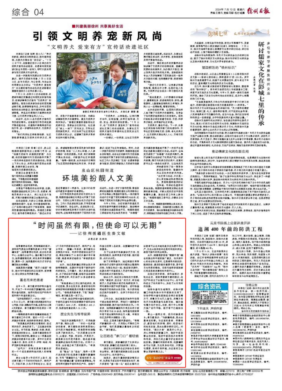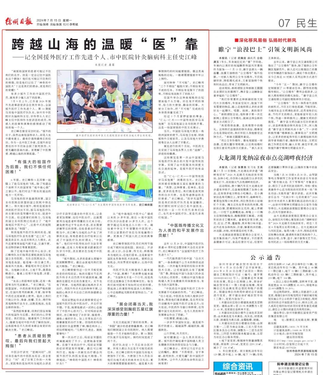 查看详情近日,《徐州日报》《都市晨报》《徐州援疆》分别以《时间虽然有限,但使命可以无期》《援疆一年, 医心医意只为你》为题对徐州援疆医生秦文敏的事迹进行报道。她带着使命...