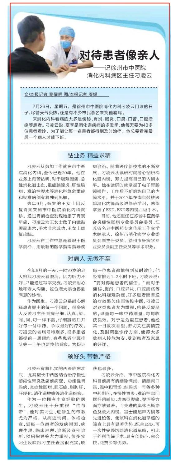 查看详情钻业务 精益求精 刁凌云从参加工作就在市中医院消化内科,至今已近20年。他在业务上刻苦钻研,对于疑难腹痛、急性消化道出血、重症胰腺炎、肝性脑病、难治...